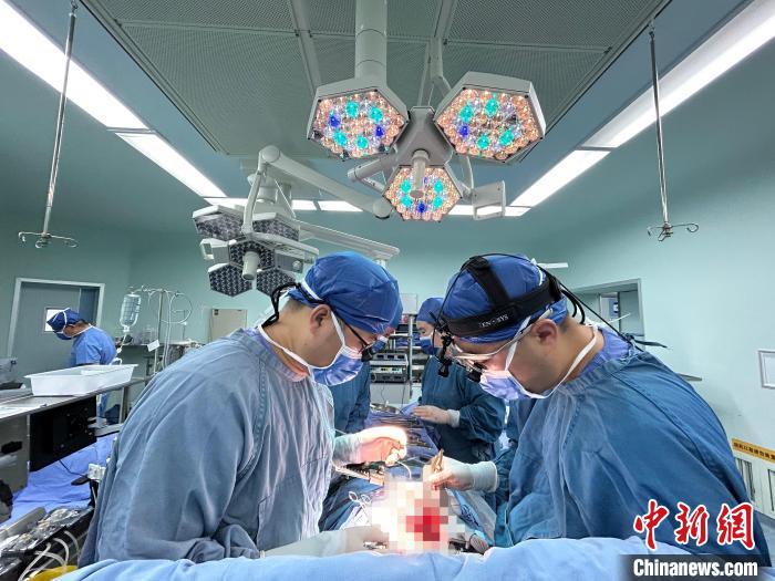 图为曹宇(右一)团队实施“非体外循环心脏搭桥+血管吻合黑科技”创新手术。云南省第一人民医院 供图
