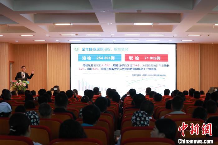 图为国家卫生健康委百万减残工程专委会主任委员、中国工程院院士吉训明介绍全国卒中减残工作部署。梁秀芬摄