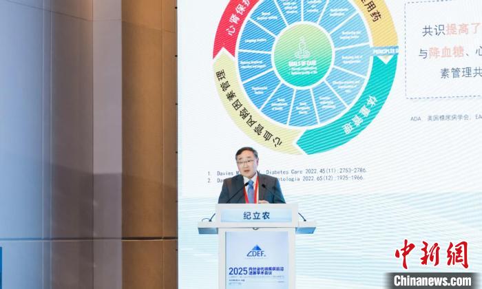 纪立农教授在2025内分泌代谢疾病前沿进展学术会议上发言。(会议组委会供图)