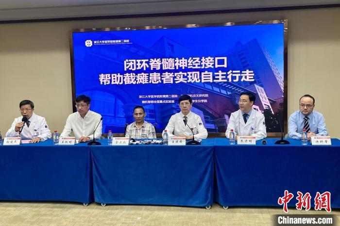 20日,记者在浙江大学医学院附属第二医院(下称浙大二院)举办的新闻发布会上获悉,浙大二院联合浙江大学南湖脑机交叉研究院、脑机智能全国重点实验室、生物医学工程与仪器科学学院成功完成国内首例“闭环脊髓神经接口”植入手术。术后患者金大叔(化名)下肢运动功能持续显著改善,不但可以直线行走,还实现转弯、上下坡、变速行走等多种日常活动,标志着国内脊髓神经接口及神经功能重塑领域取得重大技术突破。