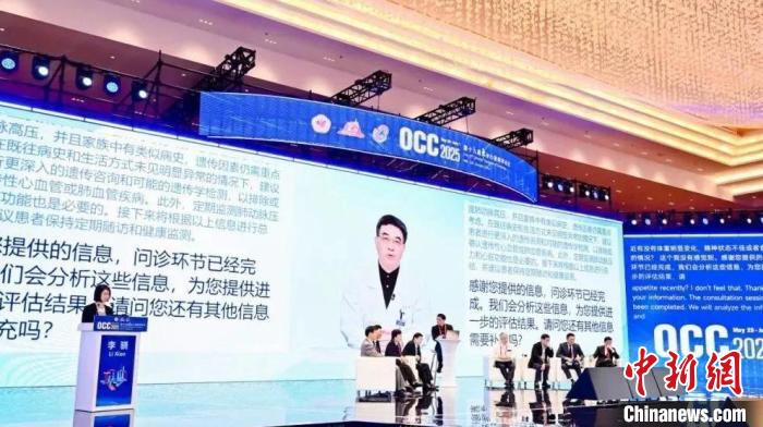 葛均波的数字人分身,与一位标准化患者进行了模拟问诊。(东方会组委会供图)