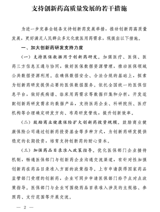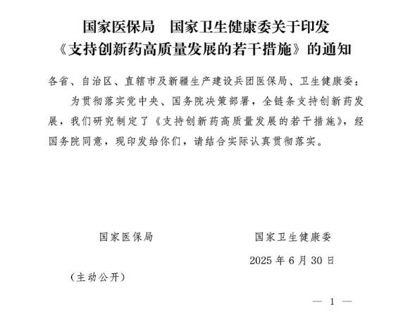 据国家医保局网站消息,国家医保局、国家卫生健康委6月30日印发《支持创新药高质量发展的若干措施》。其中提到,加大创新药研发支持力度,支持创新药进入基本医保药品目录和商业健康保险创新药品目录,支持创新药临床应用,提高创新药多元支付能力。