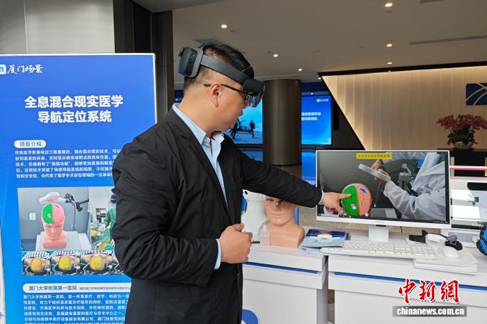 3月26日,厦门场景创新发布会暨供需对接活动举办。图为厦门大学附属第一医院卒中中心主任陈四方向参会者介绍该医院的“全息混合现实医学导航定位系统”。 吴冠标 摄