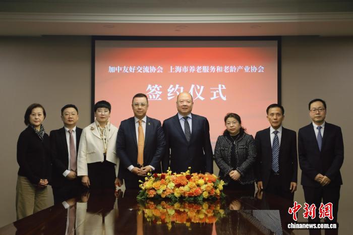 上海市养老服务和老龄产业协会与加中友好交流协会签署战略合作协议。(加中友好交流协会供图)