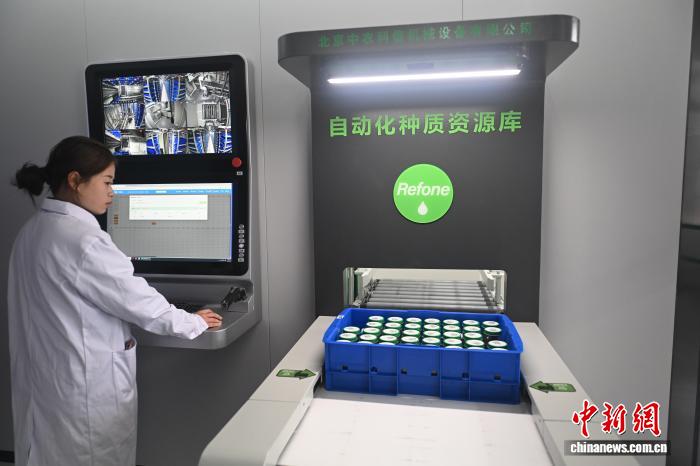 3月26日,在位于甘肃省定西市陇西县的国家药用植物种质资源库甘肃库智能库内,工作人员通过智能管控系统存取种子。中新社记者 李亚龙 摄