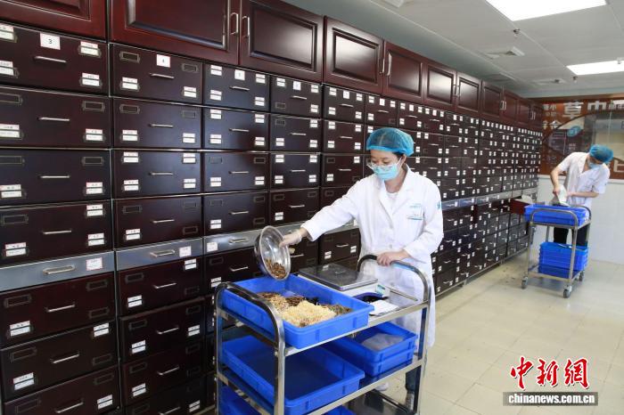 图为医院药师按方调配中药。沙坪坝区中医院供图