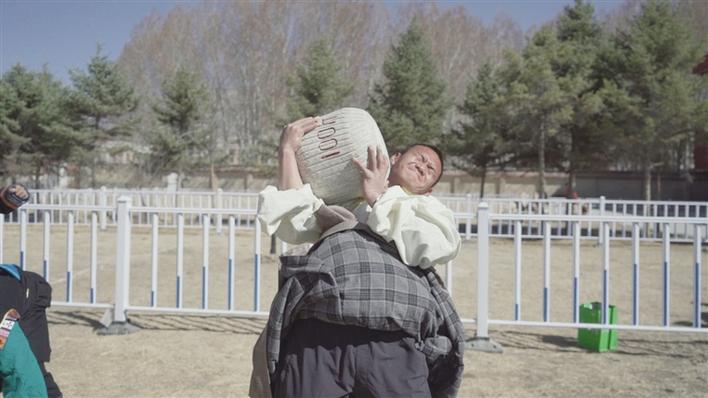抱石头。记者 阿旺尼玛 摄