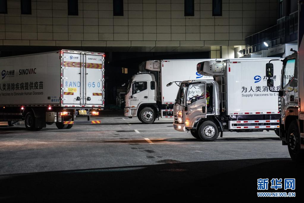 7月20日,运送疫苗的冷链车在北京科兴疫苗厂区装货。新华社记者 彭子洋 摄