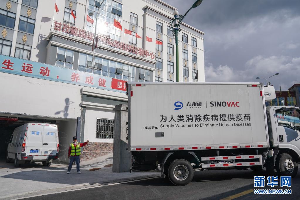 7月22日下午,运送疫苗的冷链车历经40多个小时后到达四川甘孜藏族自治州疾控中心。新华社记者 彭子洋 摄