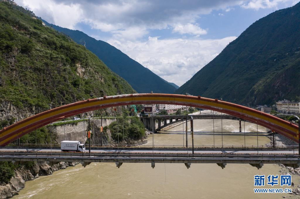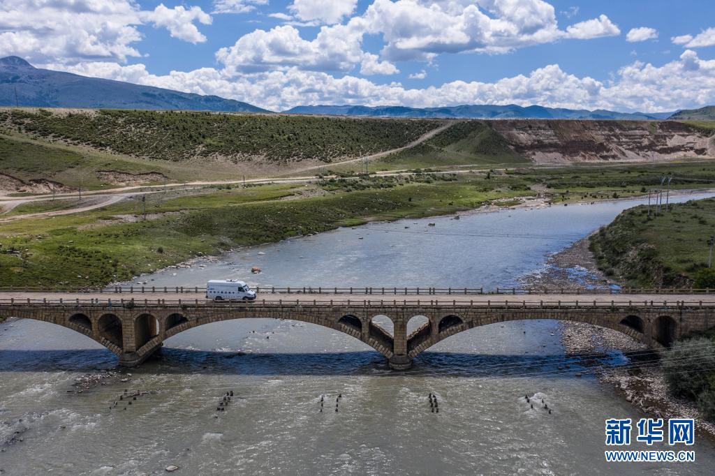 7月22日,从北京一路驶来的疫苗冷链车经过大渡河。新华社记者 彭子洋 摄