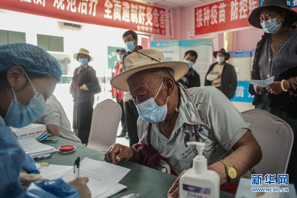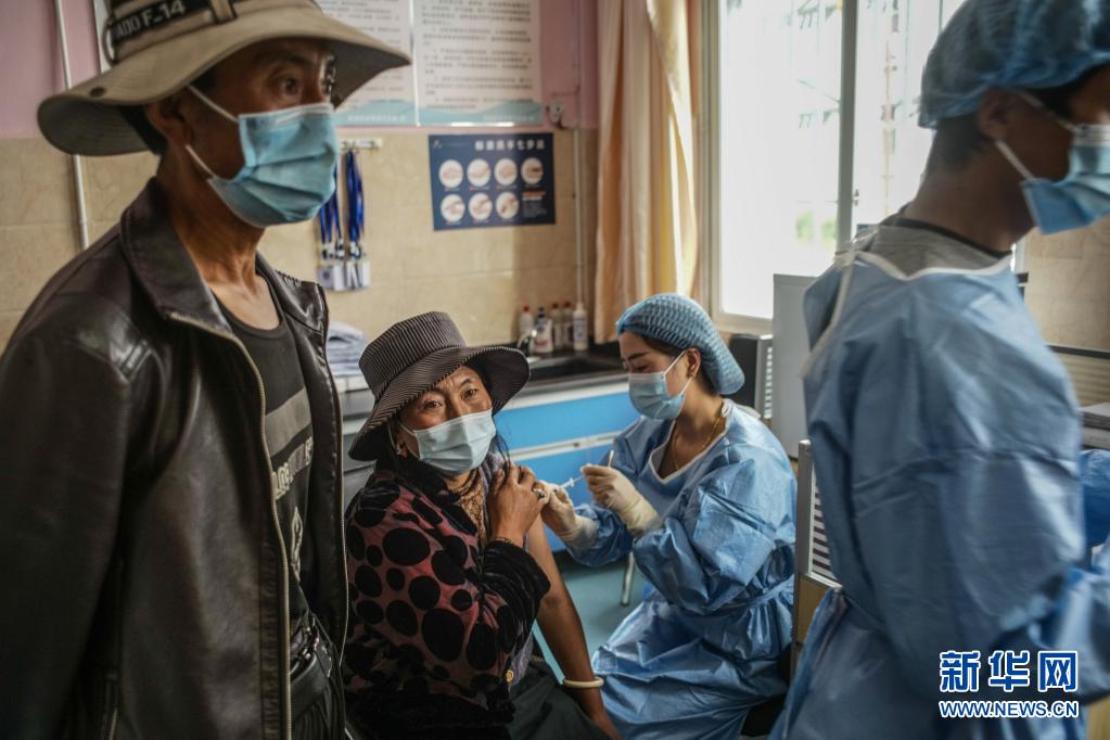 7月24日,在四川甘孜州稻城县疫苗接种点,当地群众在接种疫苗。新华社记者 彭子洋 摄