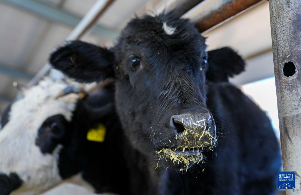 12月3日,克隆樟木牛母犊在西藏动物疫控中心(区畜牧总站)曲水实验站牛场吃草料。新华社记者 丁增尼达 摄