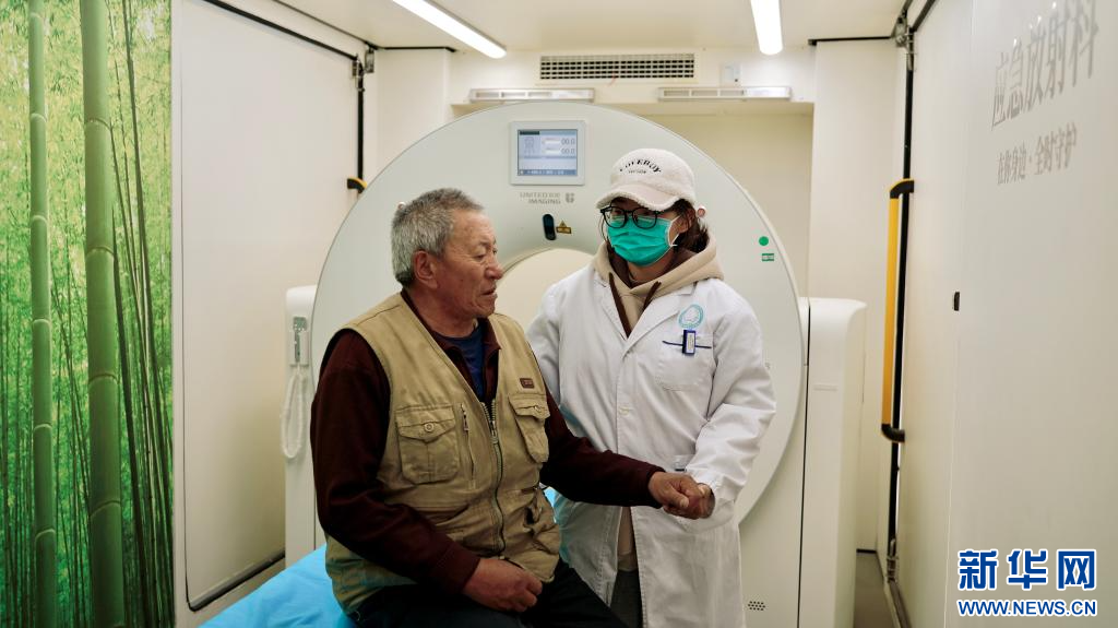 12月3日,医护人员在雅砻物交会义诊现场协助群众进行CT检查。周昱龙 摄