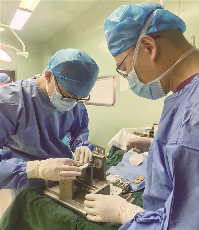 “类MEEK微型皮片移植技术”手术进行中。图由西藏军区总医院提供