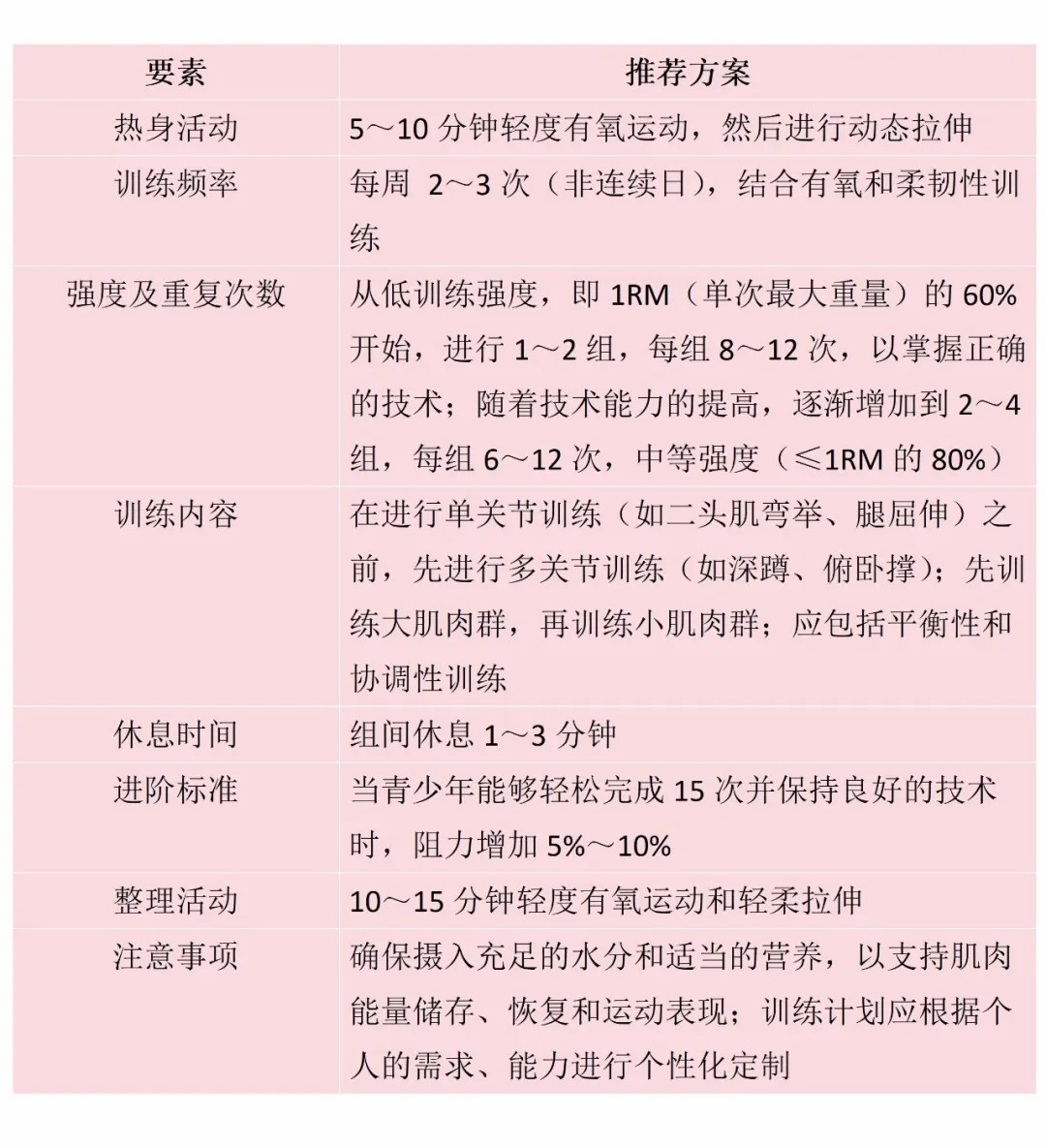 青少年的肌肉力量训练应遵循以下原则。