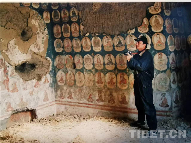 图为霍巍教授在西藏阿里考察佛教石窟壁画
