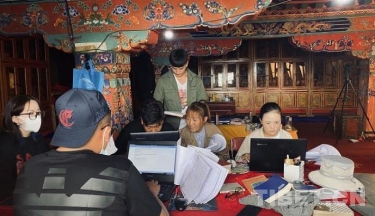 图为2021年,西藏民族大学实习生参与布达拉宫藏经的记录、统计工作