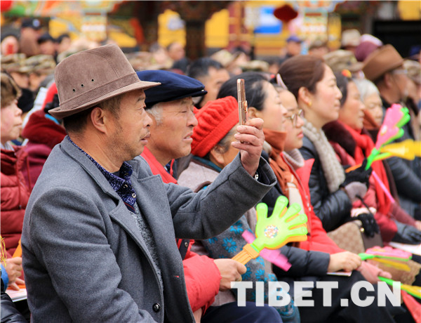 四川唐古拉风艺术团演职人员旺青说:“跟随慰问团一直从色达来到康定,虽然不能和家人一起过年,但是今天看到康定的观众这么热情,掌声就是给我们这些演员最好的肯定,有机会参加这样有意义的活动,我也觉得非常高兴。”