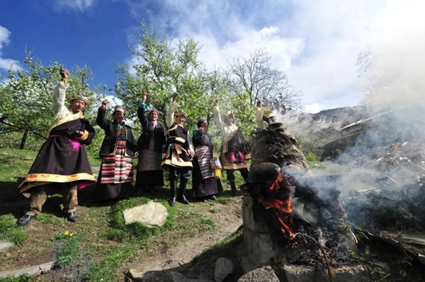 图为林芝人们在煨桑。
