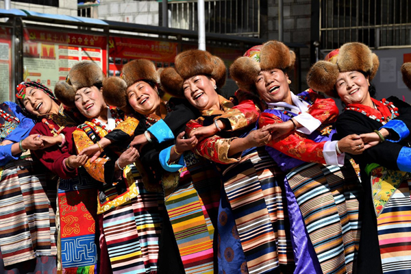 图为拉萨老年文艺队员欢度藏历新年。