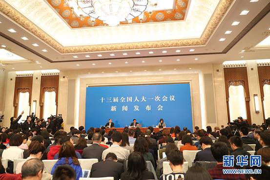 3月4日,十三届全国人大一次会议在人民大会堂新闻发布厅举行新闻发布会,由大会发言人张业遂就大会议程和人大工作相关的问题回答中外记者的提问。图为新闻发布会现场。摄影:新华网/中国政府网 陈杰