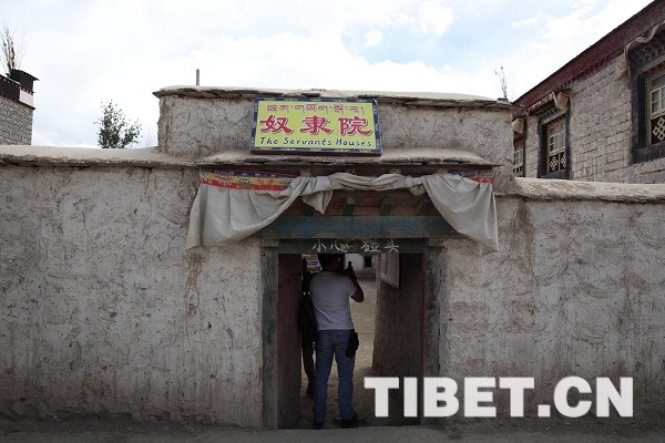 帕拉庄园和它正对面的奴隶院形成了鲜明的对比,是旧西藏贵族和农奴两种不同阶层生活的真实写照。奴隶院叫帕拉朗生院,朗生就是家奴,没有生产资料,没有受教育权力,受庄园主绝对支配,丝毫没有人身权利,被视作会说话的工具。图为奴隶院大门。