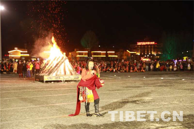 篝火燃起来了,火舌舔舐着黑夜的脸庞,也映红了人们期待的心。刚从抗灾保畜一线下来的州县乡镇干部群众重振精神,也要把年三十的歌唱一曲,舞跳一支。铿锵的仲达卓舞捧着哈达,玉树依舞的红袖扯来五彩的经幡,把心中的感恩向新时代的领路人习近平总书记敬献,把最深情的祝福及走向富起来强起来的幸福表达……
