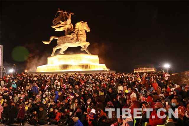 人们扶老携幼,热情高涨。偌大的格萨尔王广场人山人海,期待着除夕之夜的篝火晚会。有来自草原的阿爸,也有来自乡村的教师,有还未来得及换上新年衣裳的环卫工,也有忠于职守的人民警察……