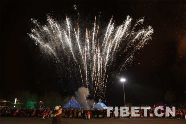 好政策一波波,好生活比蜜甜。歌舞未罢,礼花、焰火又把天空装扮得璀璨缤纷,仿佛星星戴着面具下凡人间。今夜的格萨尔王广场,将是一个不眠的夜晚;明天的玉树草原,我们又把“两个越来越好”的捷报频传。家里还有阿尼、阿依和初生的婴儿,手抓肉、藏式点心、干奶渣、花果果摞得比山高,奶茶、酸奶、可乐、橙汁喝不完,西装、藏袍、嘻哈服……哪个好了穿哪个,金银首饰挑花了眼,戴上一轮拉贝正好赛月亮。出门不出门,家里还有大屏幕的央视春晚,藏家女神昂萨要亮相……
