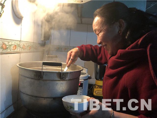 当晚,西藏拉萨市阿坝林卡社区的索朗旺堆老人一家聚在一起,一起品尝了寓意十足的“古突”。