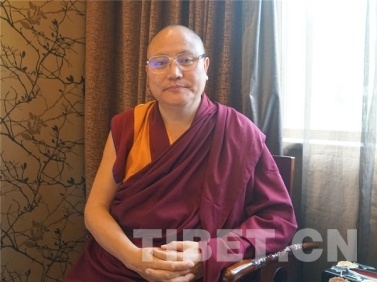图为达扎•尕让托布旦拉西降措活佛接受中国西藏网记者采访。