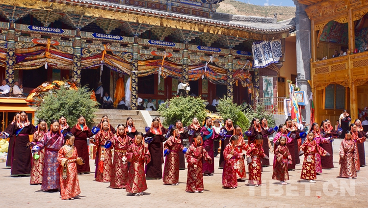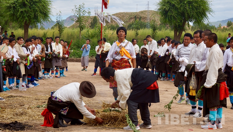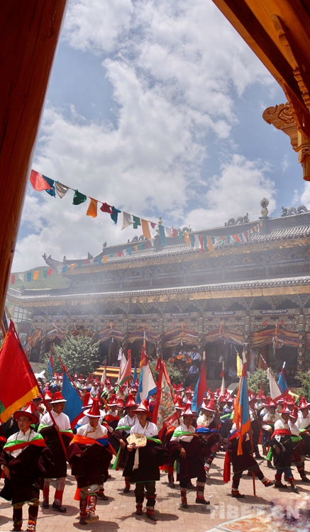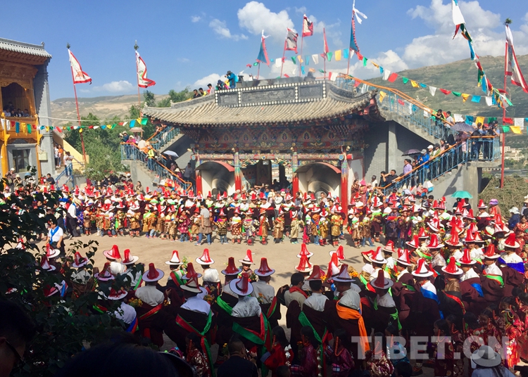 图为军舞仪式,军舞传说是为纪念唐蕃停战交好而舞