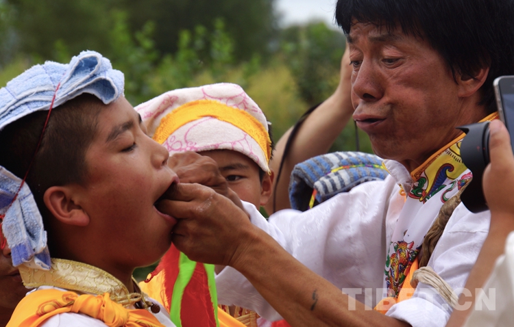 图为插好口钎的少年们开始跳神舞