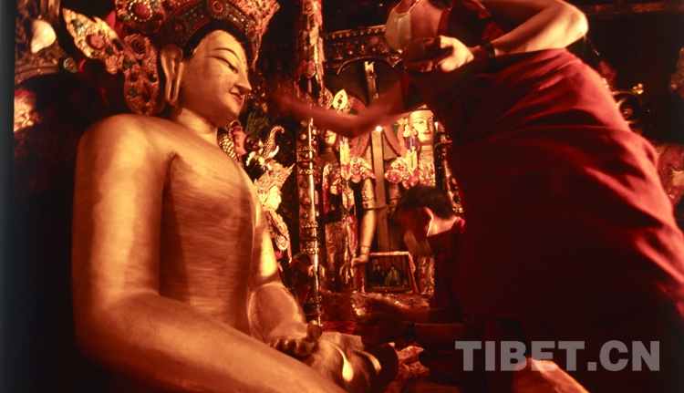 藏族朋友们认为,刷金不仅能给佛像增加神圣庄严的气氛,更能使观看者生恭敬清净的心,为佛像刷金、尤其是为释迦牟尼12岁等身像刷金的功德是非常巨大的。