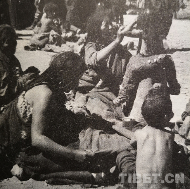 图为20世纪50年代初西藏街头乞讨的妇女儿童 翻拍:李元梅
