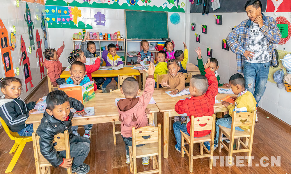 图为山南市乃东区颇章乡完小附设双语幼儿园的孩子们 摄影:曲业芝