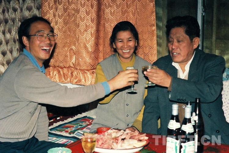 图为唐召明在时任西藏自治区人大常委会副主任洛桑丹珍家中做客(唐召明1998年摄)