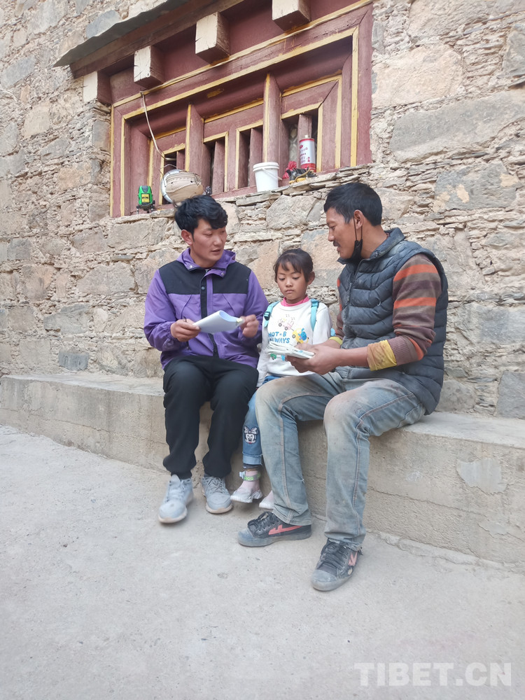 “降措老师,快进来喝碗茶吧!”藏家小院门口,阿婆志玛一看到降措,就热情地招呼他到家里喝茶。阿婆志玛是他的学生泽拉翁姆家的老人,祖孙俩人相依生活。阿婆年纪大了,干活不利索,降措就经常去她家帮忙干一些劈柴、翻地、除草等体力农活。降措是个热心人,利用公休假日长期无偿帮助像泽拉翁姆家一样缺劳动力的学生家庭,默默无闻做好事已达七八年。
