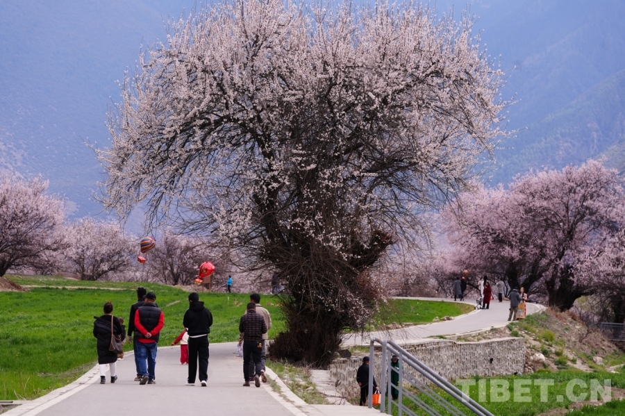 图为游客在布久乡朵当村桃花园散步 摄影:德吉卓玛
