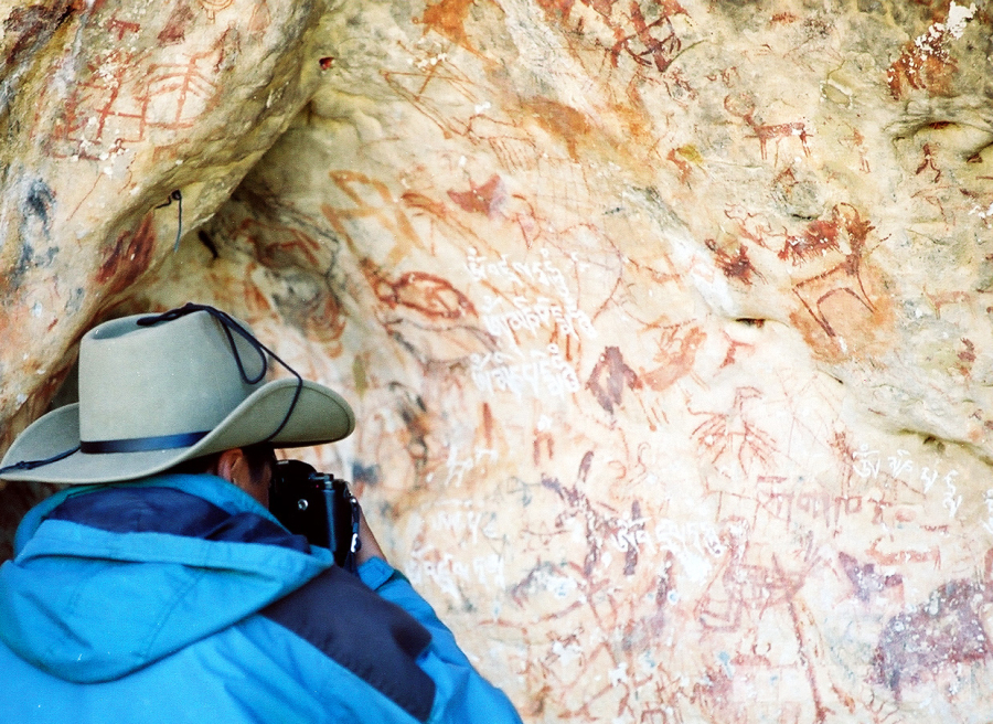 特别是2001年7月17日,我跟随由地矿、岩画、动植物、藏药等多学科人员组成的科考团,先是驱车来到世界上海拔最高的咸水湖——纳木错。在这里考察湖东岸的扎西半岛洞穴岩画和湖西岸的其多山洞穴岩画。