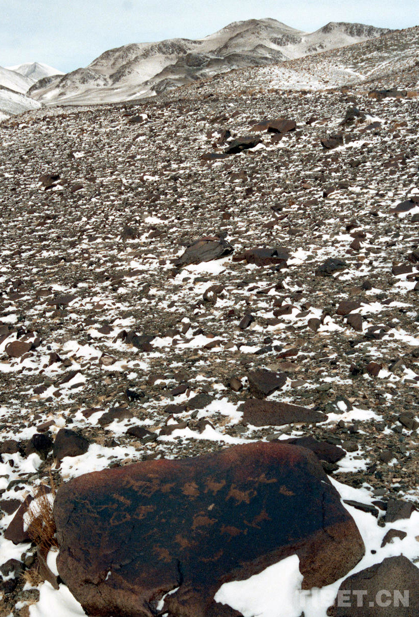 无独有偶。在后来的几天里,我们在那曲地区(现那曲市)尼玛县荣玛乡加林山俄东沟也发现了大量石头岩画。