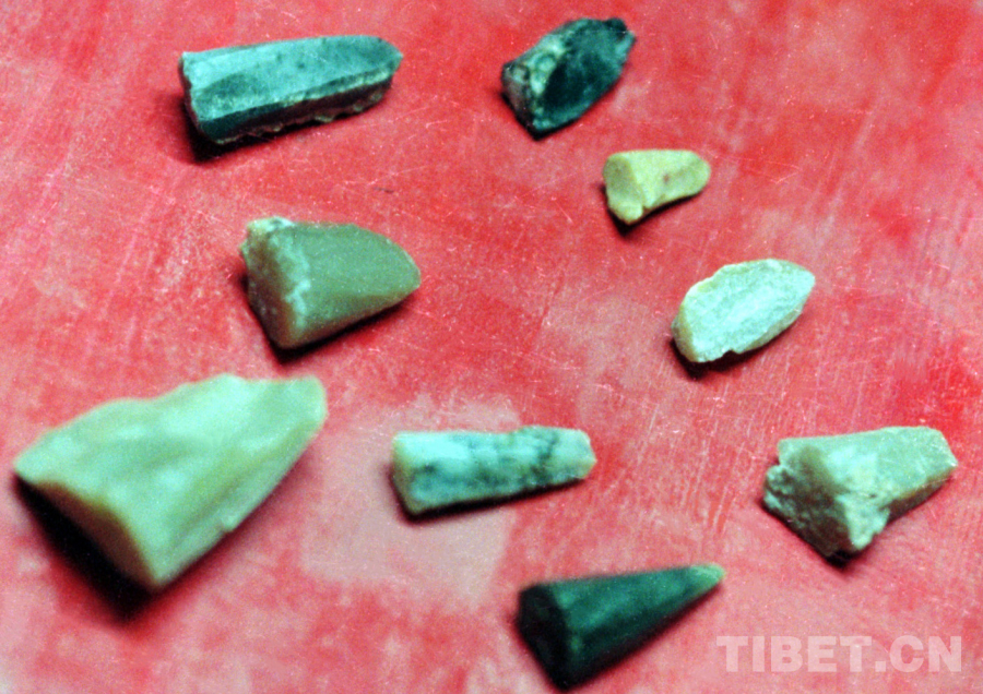 图为在巴毛琼宗等地所发现的古人类所留下的打制石器(唐召明2002年摄)