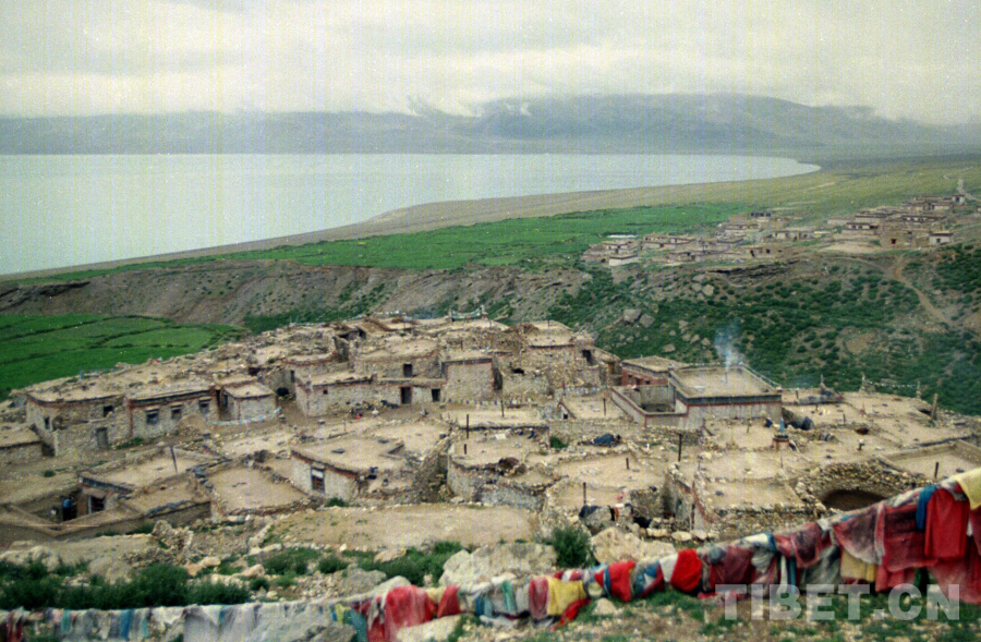 图为当惹雍错湖畔的尼玛县文部乡南村(唐召明1987年摄)