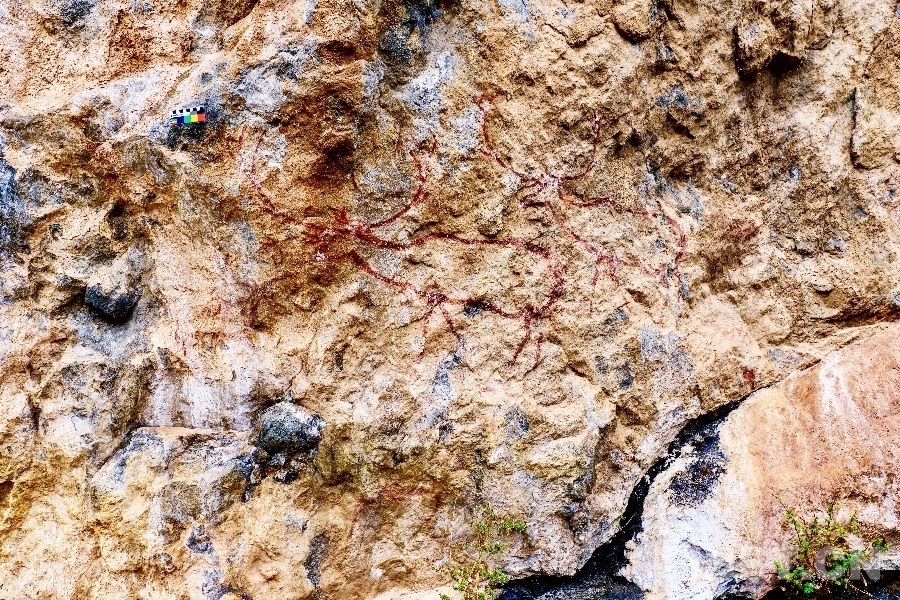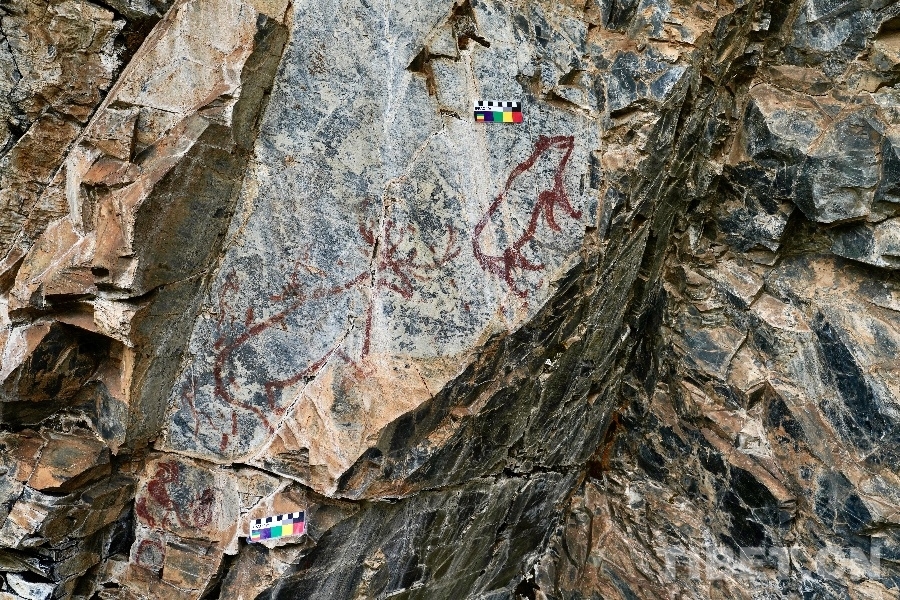 周行康:2023年6月,在海子山管委会巡山团队提供线索指引下,经过数次实地调查,我们在“海子山-格聂”区域发现了红颜料涂绘类岩画群。通过邀请国内考古权威机构来现场采样、并经实验室测定,我们确认这批岩画是距今8000年前的古老创作。目前从世界范围来看,石刻类岩画的测年还没有得到一个有效的解决,青藏高原的石刻类岩画,一般推断为距今3000多年,因而这批更久远的旧石器时代的“海子山-格聂”岩画就显得更有意义,而且它是目前已知的世界上同类风格岩画中海拔最高的岩画——位于海拔4721米的高度。