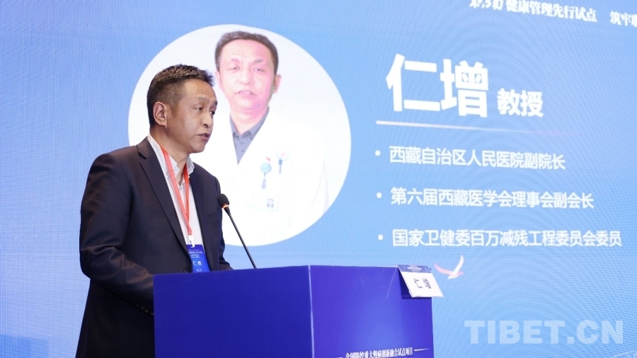 图为西藏自治区人民医院副院长、第六届西藏医学会理事会副会长、国家卫健委百万减残工程委员会委员仁增教授发言