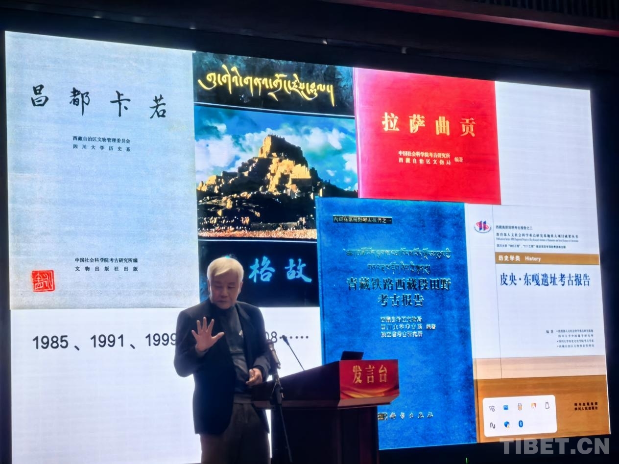 4月29日,西藏大学、西藏民族大学外聘教授李永宪在西藏自治区文物保护研究所举办的“庆祝西藏自治区成立六十周年学术汇报暨2024年度业务工作公众分享会”上发表演讲。摄影:王淑