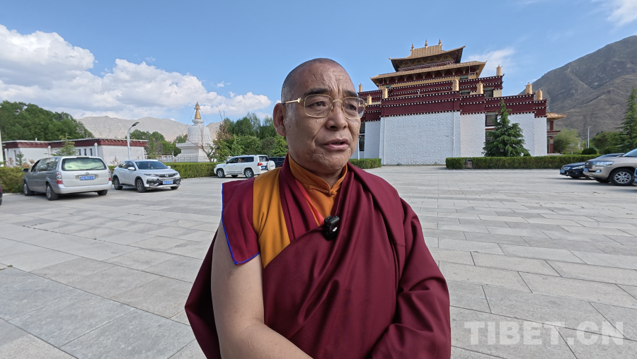 图为中国佛教协会西藏分会驻会副会长班典顿玉接受采访 摄影:赵振宇
