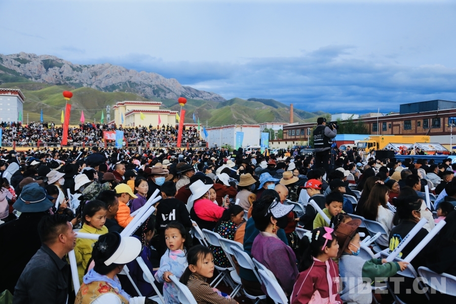 图为启幕仪式现场座无虚席,为囊谦县群众带来一场跨越地域的文化盛宴与视听体验。摄影:龙真多吉