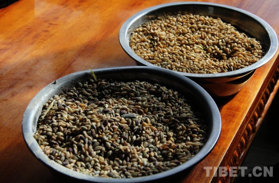 图为文布南村产出的两种青稞 摄影:赵钊