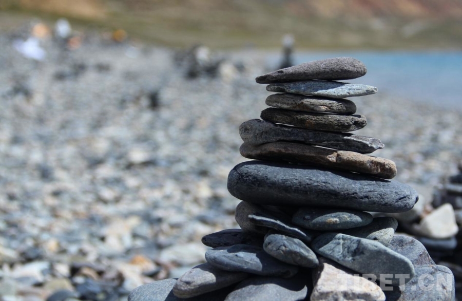 图为当惹雍错岸边的玛尼石堆 摄影:赵钊